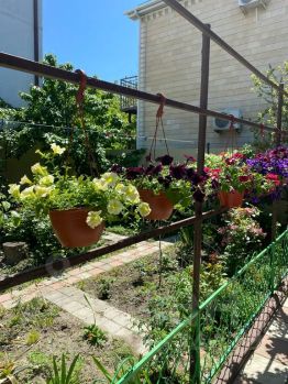 Дом под ключ, большой двор, мангал, все магазины рядом, рынок рядом. Самый чистый галечный пляж совсем рядом. Парковка, есть столы. Количество человек 6, можно 8 за отдельную плату. С вокзала встречаем. Дом разделен на две половины, в одной половине 2 комнаты, в другой половине 3 комнаты, обе половины закрываются на свой ключ. В одной половине 3 человека и в другой половине 3 человека, и ещё одна комната на 2-х тоже закрывается на свой ключ. Хорошая кухня со всей необходимой посудой. Большая ванна, 2 туалета, душ. Во дворе ещё один туалет и один душ только для этого дома.