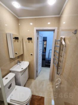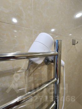 В ванной комнате : душевая кабина с тропическим душем, унитаз, стиральная машина, полотенцесушитель, фен для волос.