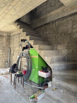 Гараж в 3 полноценных этажа по 27 метров каждый, бетонные монолитные перекрытия, бетонная лестница, огромные окна, выход на 2 стороны, септик, вода, свет, залита плита под террасу и клумбы, закладные под навес для винограда! Сделана полноценная вытяжка, закончен ремонт в подвальном этаже, плитка, штукатурка, покраска, освещение. Подвал сухой( так как в скале), грунтовых вод в этом районе нет, это Высокий берег.