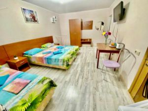 Простор и комфорт: дом площадью 224 кв.м. располагает 8 большими просторными номерами, каждый по 23 кв.м. Все номера оснащены новой мебелью, современной бытовой техникой и имеют свой собственный санузел. Отличный ремонт и свежий дизайн порадуют ваших будущих гостей.