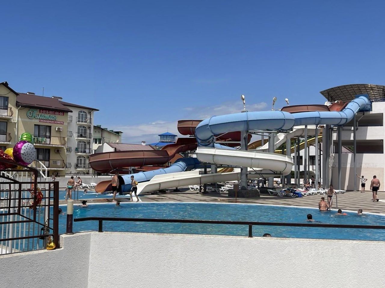 На территории располагается два больших бассейна, столовая, аквапарк, кафе, зоны для прогулки, лечебный центр, кинотеатр, шведский стол. Имеется большая охраняемая парковка на территории в спец выделенном месте- платно