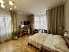 Гостиница на 12 номеров, три этажа и цоколь, где размещен гараж, подсобное помещение свободного назначения, котельная. Просторные комнаты комфорт класса, пол паркет, в каждом номере: двух спальная кровать, диван, шкаф, комод, телевизор, сплит система, холодильник, санузел, душевые, ванны. Кухни столовые общего пользования. Газовое отопление, ВСЕ КОММУНИКАЦИИ ЦЕНТРАЛЬНЫЕ!!!