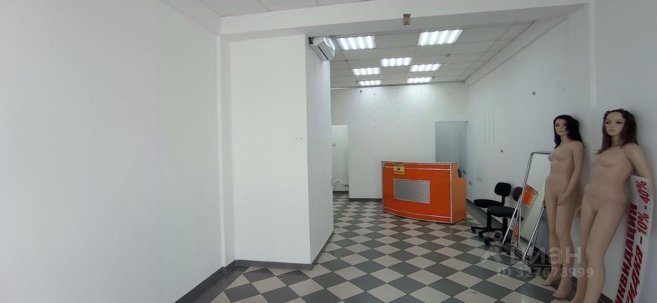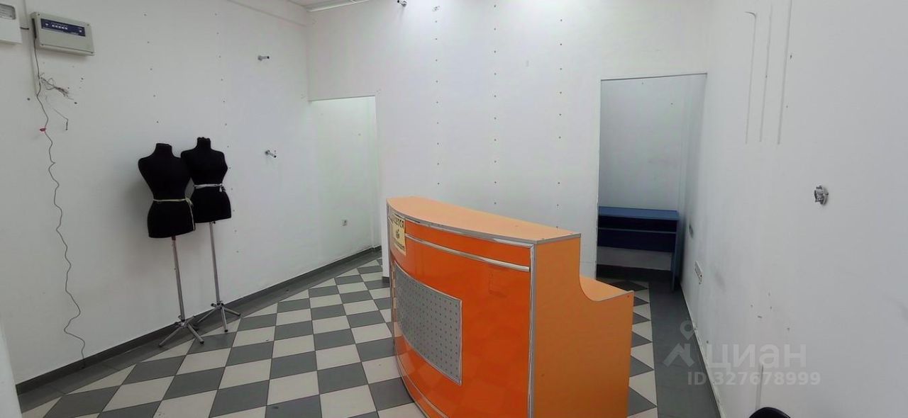 В помещении есть сан.узел с раковиной, примерочная и кухонная зона с полками для товара.