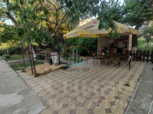 Территория облагорожена, много зелени, цветов, плодовых деревьев (киви, гранат, миндаль, черешня, и пр.) детская площадка, зона барбекю, летняя кухня.
