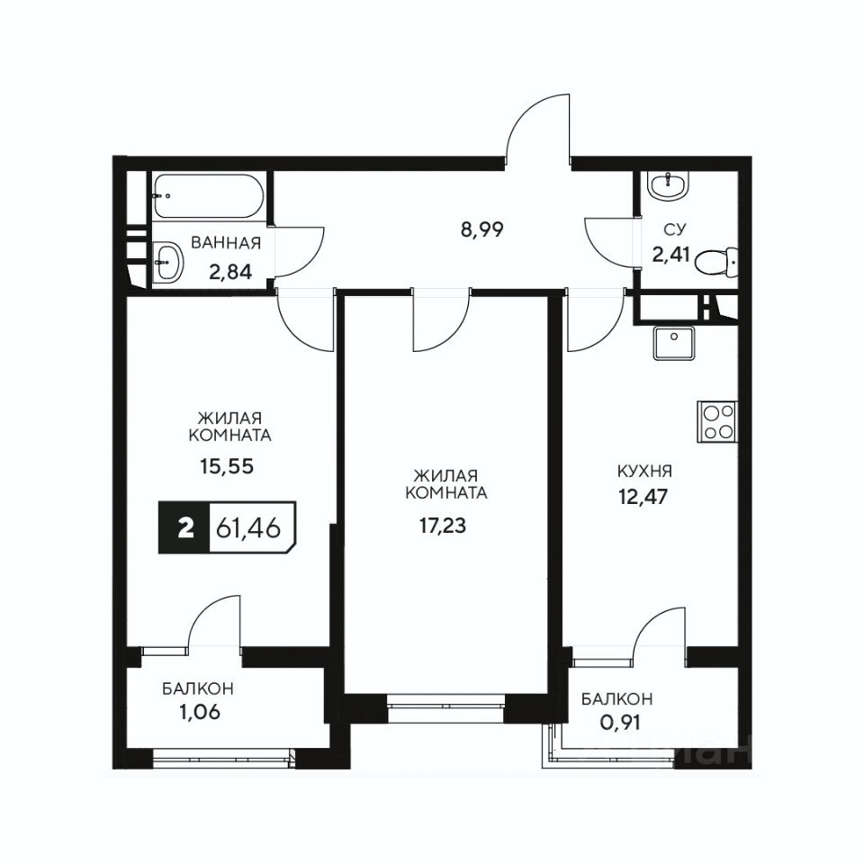 Общая площадь61,46 м²