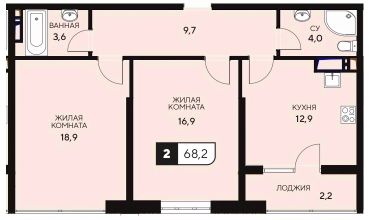 Общая площадь68,2 м²