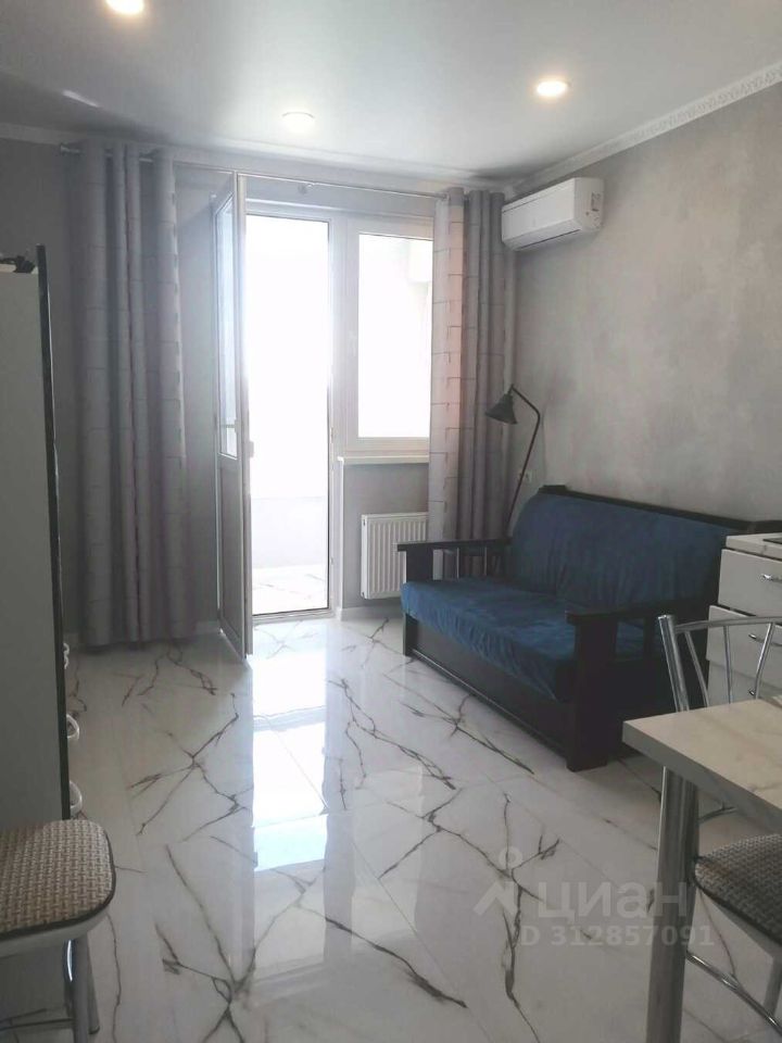 Красивая студия с ремонтом выполненном в светло серых тонах, с кондиционером, домофоном и большим балконом.