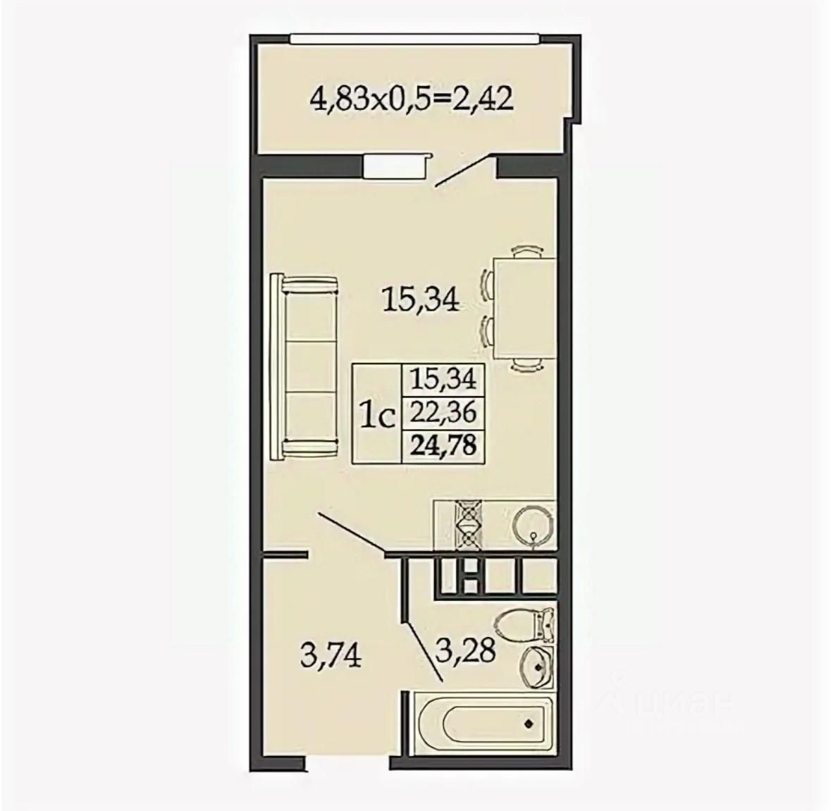 Квартира студия 24м2 в ЖК Горизонт, 10 этаж, вид на двор и улицу