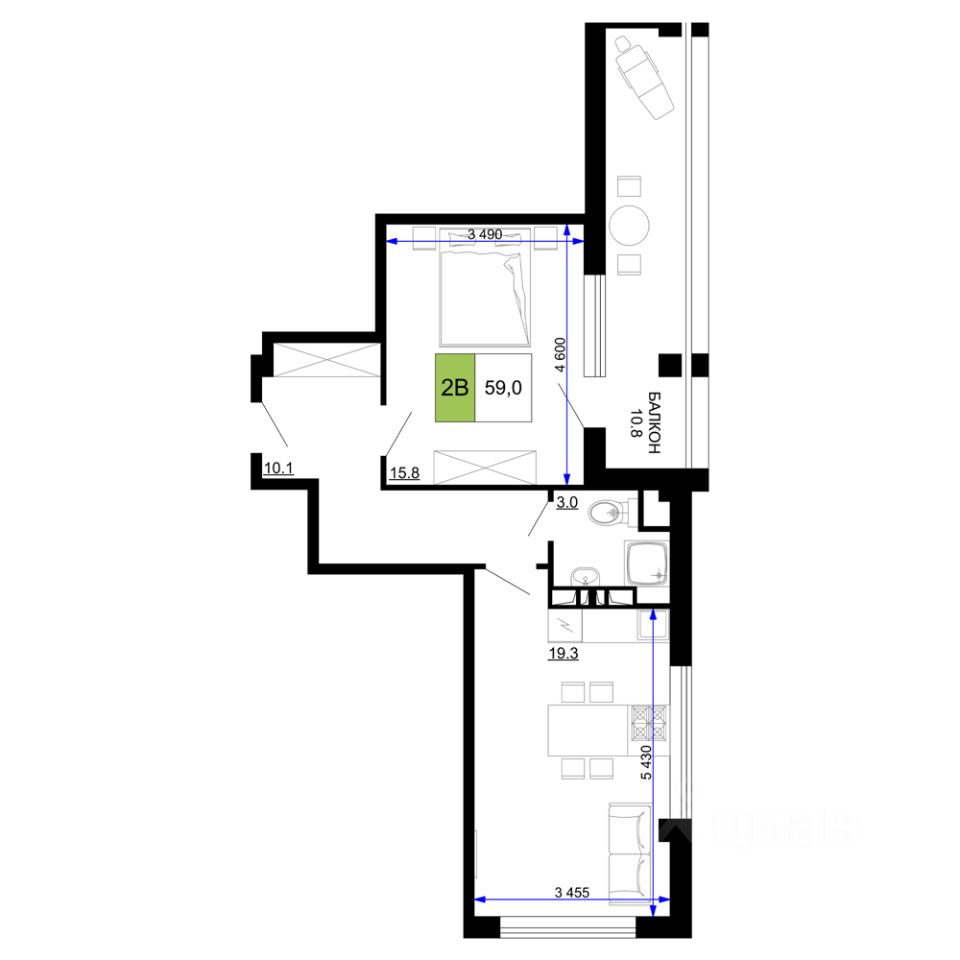 Общая площадь59 м²