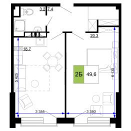 Общая площадь49,6 м²
