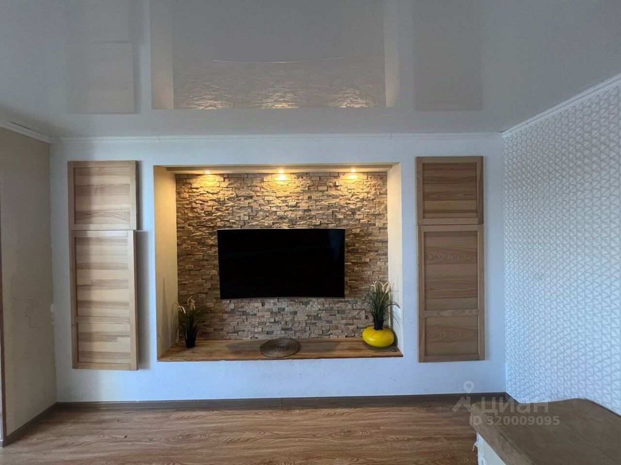 Ремонт выполнен в современном стиле, глянцевые потолки придают воздушности и визуально делают помещение еще больше
