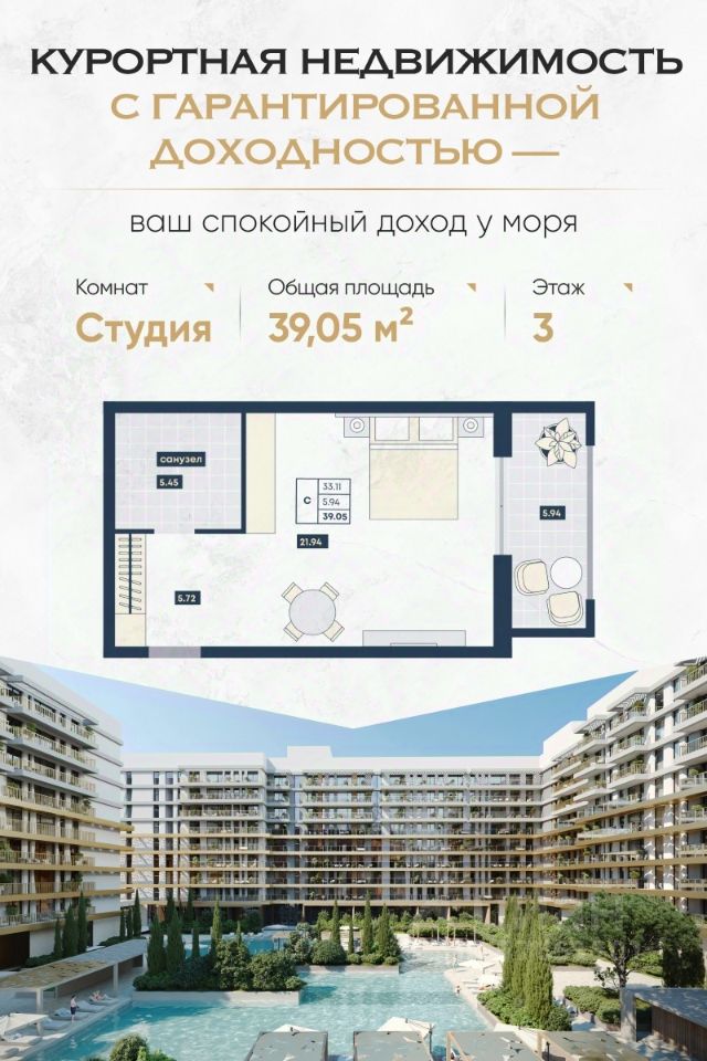 ГК "Лучи", Анапа. Вложение с перспективой, созданное для пассивного дохода и сохранения капитала. — Доход до 16% годовых под управлением отельной компании — Рассрочка до 90% — от 15 тыс. руб./м² в месяц — 6 лет — средний срок окупаемости — Успейте купить до роста цен. Сдача уже во 2 кв. 2026 года Почему выбирают "Лучи" в Анапе: — Доход без забот: вся инфраструктура, управление, маркетинг и обслуживание уже организованы. — Пассивный доход круглый год: крытый аквапарк, медцентр, банный комплекс, 30+ ресторанов, детский центр и конгресс-холл обеспечивают круглогодичную загрузку. — Уверенность в завтрашнем дне: проект реализуется по 214-ФЗ, с эскроу-счетами. Это один из самых защищённых форматов инвестиций. — Надёжная альтернатива банковским продуктам: в условиях инфляции и нестабильности недвижимость остаётся одним из самых устойчивых активов. — Локация и масштаб: 700 метров до моря, 32 гектара территории, 6 500 апартаментов под управлением профессиональных операторов. Формат — апартаменты с отделкой от "Azimut" Номера передаются с полным оснащением по высоким отельным стандартам. Управление и загрузка на стороне опытной управляющей компании. Вы получаете доход без вовлечённости. Подходит вам, если вы: — Думаете о пассивном доходе и финансовой подушке — Хотите сохранять и приумножать капитал, не погружаясь в операционные вопросы — Заботитесь о будущем семьи или формируете вложение в наследство — Хотите отдыхать сами или сдавать под управлением Получите презентацию с планировками, ценами и расчётами доходности. Покажем, как ваша инвестиция будет работать на вас уже с момента сдачи. Сейчас — лучшее время, чтобы зафиксировать цену до повышения. Инвестируйте в отдых, который приносит доход.