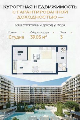 Продается апартаменты-студия, 39,05 м²