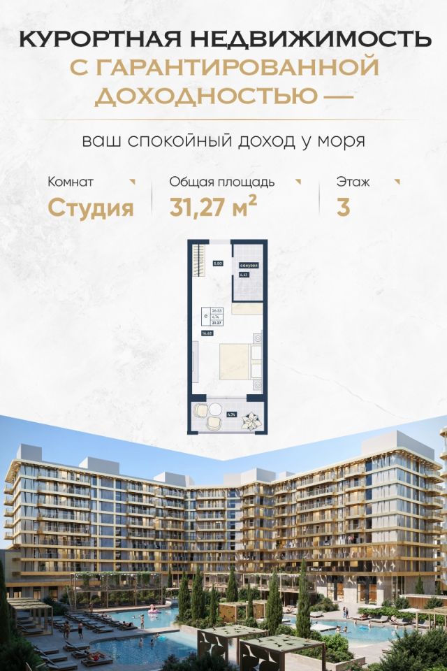 ГК "Лучи", Анапа. Вложение с перспективой, созданное для пассивного дохода и сохранения капитала. — Доход до 16% годовых под управлением отельной компании — Рассрочка до 90% — от 15 тыс. руб./м² в месяц — 6 лет — средний срок окупаемости — Успейте купить до роста цен. Сдача уже во 2 кв. 2026 года Почему выбирают "Лучи" в Анапе: — Доход без забот: вся инфраструктура, управление, маркетинг и обслуживание уже организованы. — Пассивный доход круглый год: крытый аквапарк, медцентр, банный комплекс, 30+ ресторанов, детский центр и конгресс-холл обеспечивают круглогодичную загрузку. — Уверенность в завтрашнем дне: проект реализуется по 214-ФЗ, с эскроу-счетами. Это один из самых защищённых форматов инвестиций. — Надёжная альтернатива банковским продуктам: в условиях инфляции и нестабильности недвижимость остаётся одним из самых устойчивых активов. — Локация и масштаб: 700 метров до моря, 32 гектара территории, 6 500 апартаментов под управлением профессиональных операторов. Формат — апартаменты с отделкой от "Azimut" Номера передаются с полным оснащением по высоким отельным стандартам. Управление и загрузка на стороне опытной управляющей компании. Вы получаете доход без вовлечённости. Подходит вам, если вы: — Думаете о пассивном доходе и финансовой подушке — Хотите сохранять и приумножать капитал, не погружаясь в операционные вопросы — Заботитесь о будущем семьи или формируете вложение в наследство — Хотите отдыхать сами или сдавать под управлением Получите презентацию с планировками, ценами и расчётами доходности. Покажем, как ваша инвестиция будет работать на вас уже с момента сдачи. Сейчас — лучшее время, чтобы зафиксировать цену до повышения. Инвестируйте в отдых, который приносит доход.