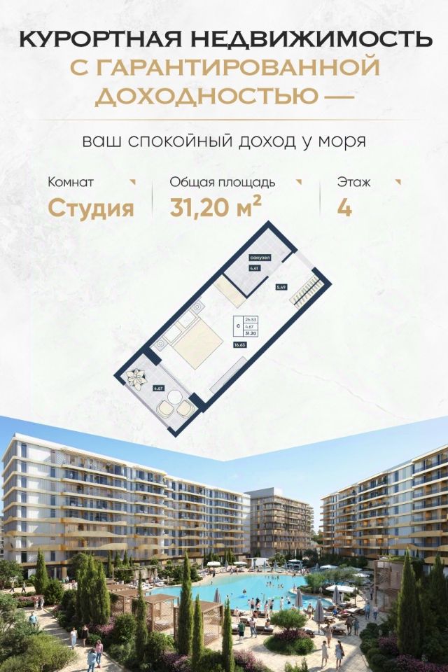 ГК "Лучи", Анапа. Вложение с перспективой, созданное для пассивного дохода и сохранения капитала. — Доход до 16% годовых под управлением отельной компании — Рассрочка до 90% — от 15 тыс. руб./м² в месяц — 6 лет — средний срок окупаемости — Успейте купить до роста цен. Сдача уже во 2 кв. 2026 года Почему выбирают "Лучи" в Анапе: — Доход без забот: вся инфраструктура, управление, маркетинг и обслуживание уже организованы. — Пассивный доход круглый год: крытый аквапарк, медцентр, банный комплекс, 30+ ресторанов, детский центр и конгресс-холл обеспечивают круглогодичную загрузку. — Уверенность в завтрашнем дне: проект реализуется по 214-ФЗ, с эскроу-счетами. Это один из самых защищённых форматов инвестиций. — Надёжная альтернатива банковским продуктам: в условиях инфляции и нестабильности недвижимость остаётся одним из самых устойчивых активов. — Локация и масштаб: 700 метров до моря, 32 гектара территории, 6 500 апартаментов под управлением профессиональных операторов. Формат — апартаменты с отделкой от "Azimut" Номера передаются с полным оснащением по высоким отельным стандартам. Управление и загрузка на стороне опытной управляющей компании. Вы получаете доход без вовлечённости. Подходит вам, если вы: — Думаете о пассивном доходе и финансовой подушке — Хотите сохранять и приумножать капитал, не погружаясь в операционные вопросы — Заботитесь о будущем семьи или формируете вложение в наследство — Хотите отдыхать сами или сдавать под управлением Получите презентацию с планировками, ценами и расчётами доходности. Покажем, как ваша инвестиция будет работать на вас уже с момента сдачи. Сейчас — лучшее время, чтобы зафиксировать цену до повышения. Инвестируйте в отдых, который приносит доход.