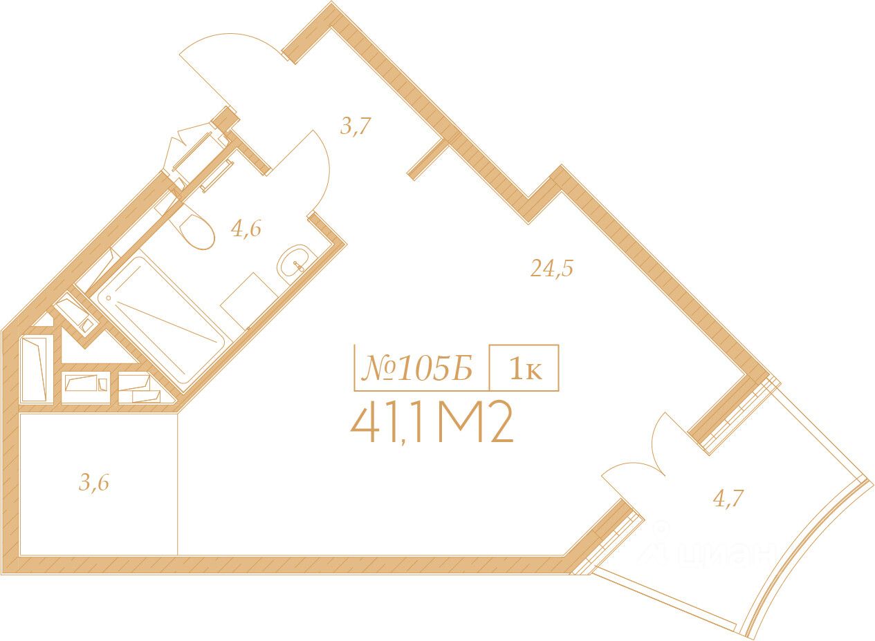 Общая площадь41,1 м²