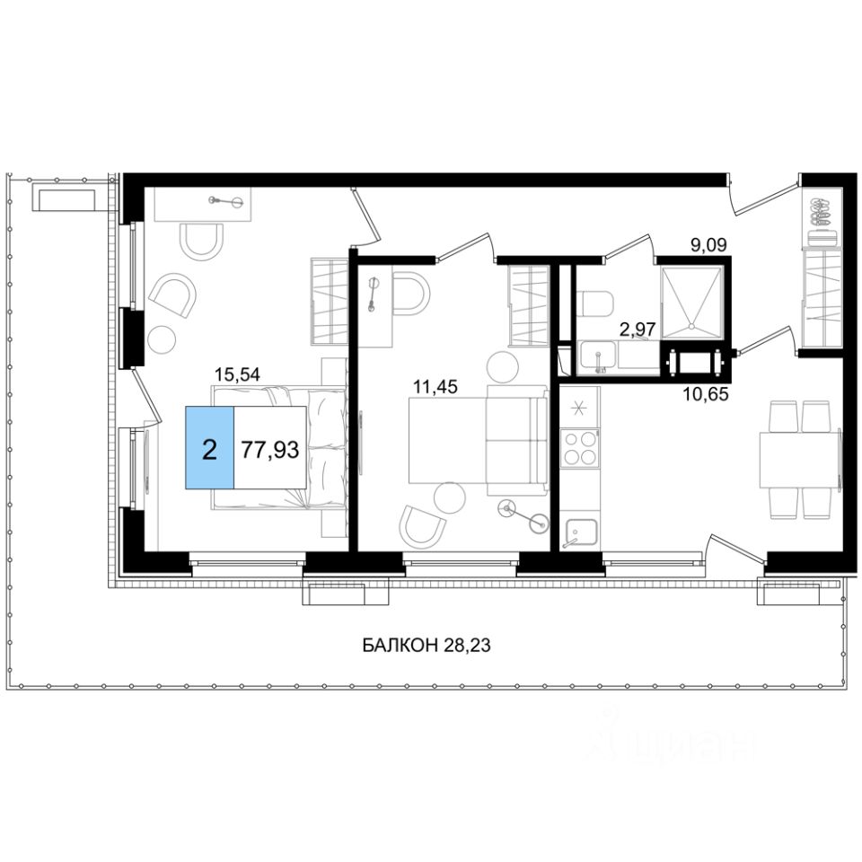 Общая площадь77,93 м²