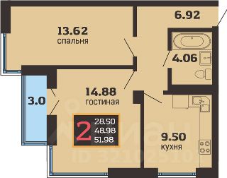 Общая площадь 53 кв.м.