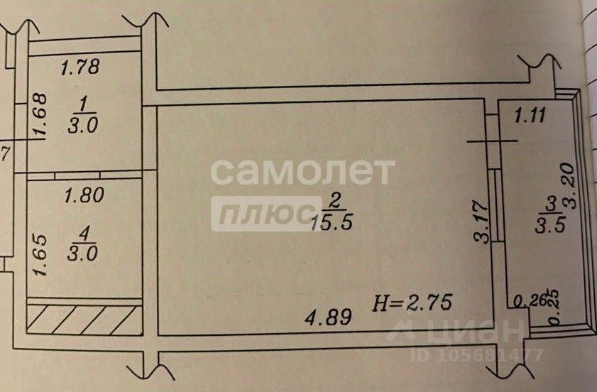 • Полы: ламинат в комнате, плитка в санузле