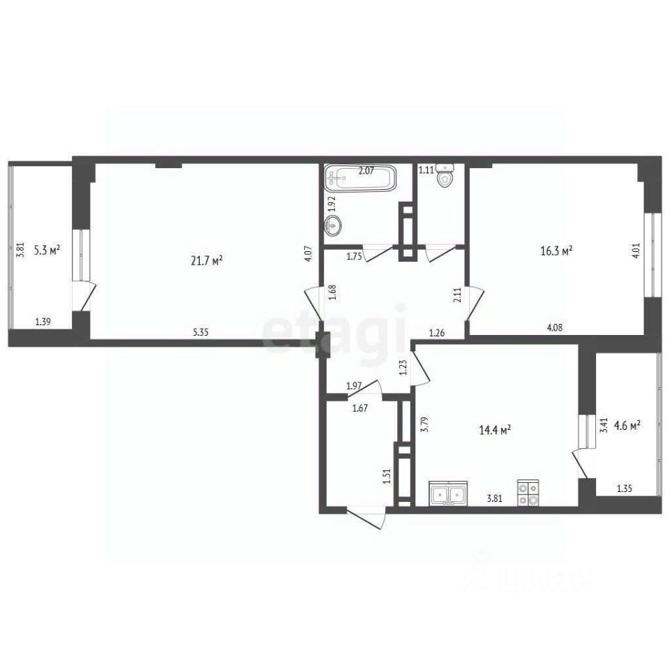 В продаже просторная евро трёхкомнатная квартира с шикарной планировкой общей площадью 67,4 кв.м. на 4 этаже девятиэтажного дома. Комнаты изолированные, раздельный санузел. Большая прихожая. Просторная кухня-гостиная.