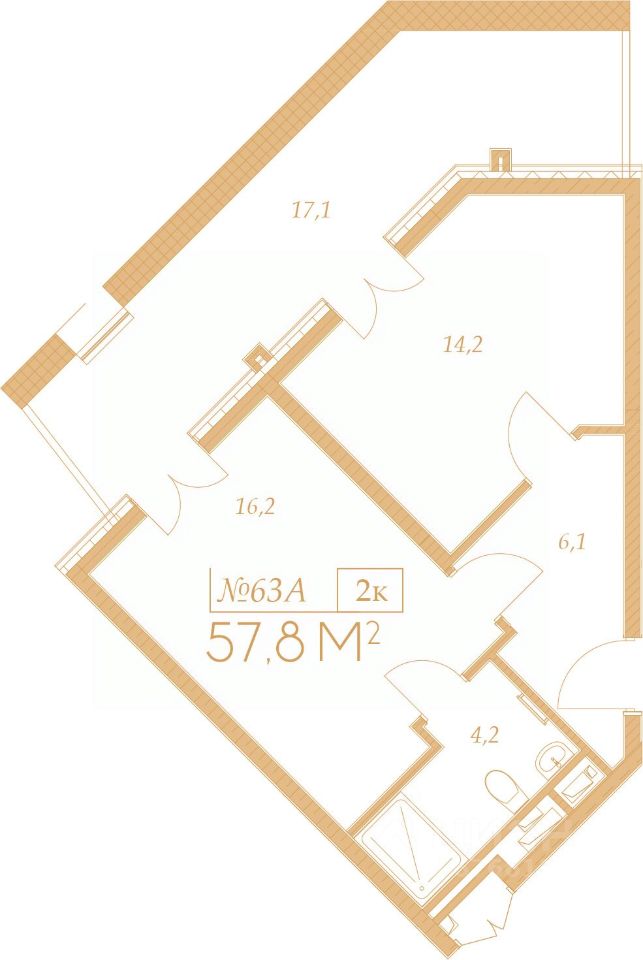 Общая площадь57,8 м²