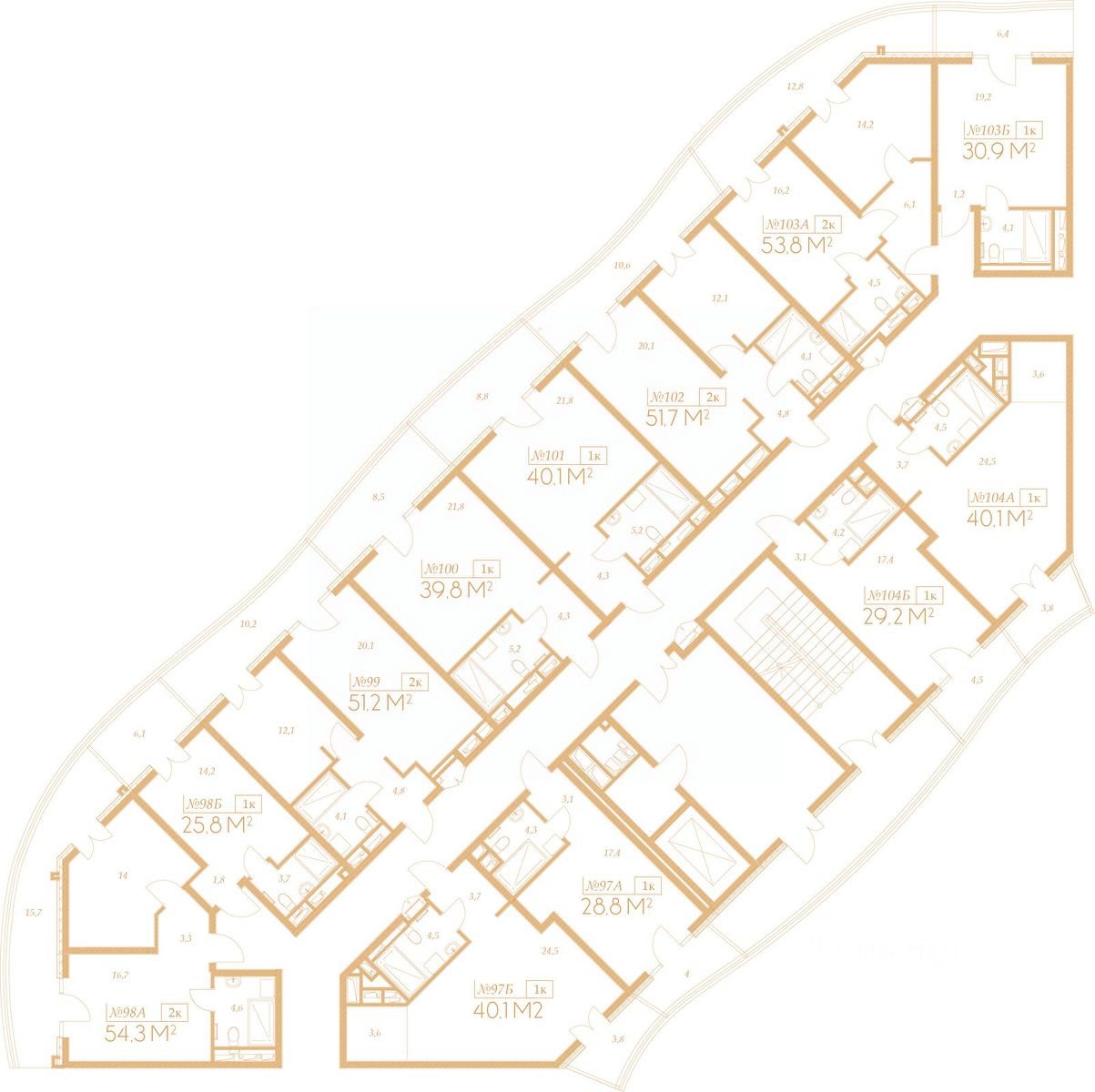 53,8 м²