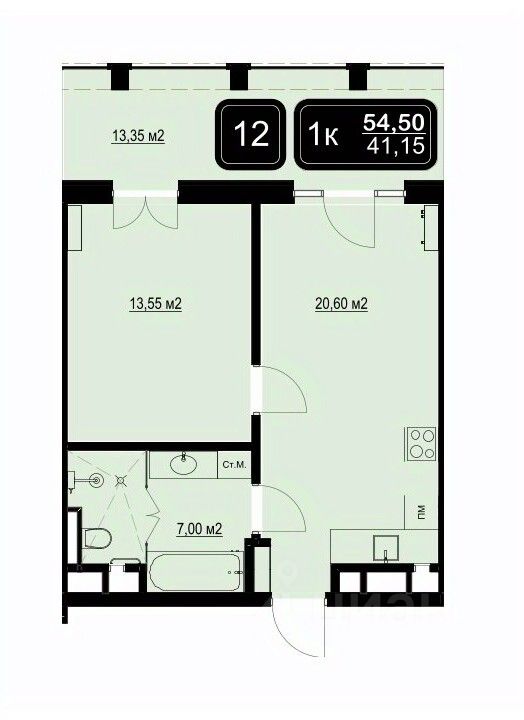 Общая площадь54,5 м²