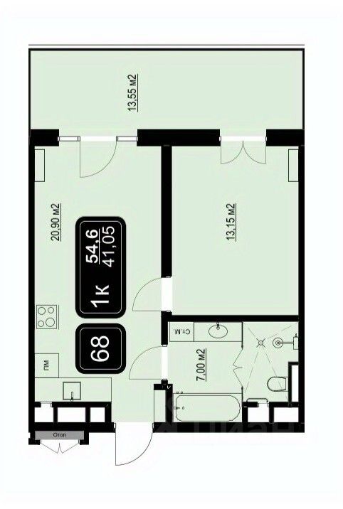 Общая площадь54,6 м²