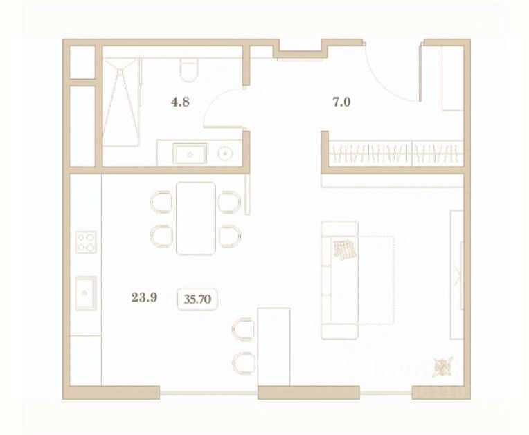 Общая площадь35,7 м²