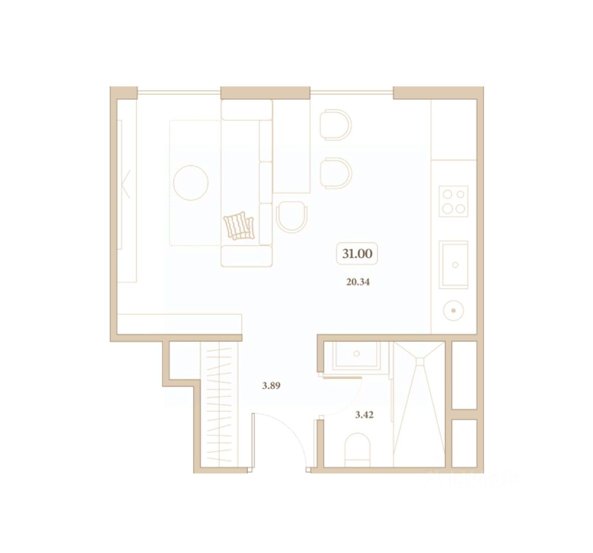 Общая площадь31 м²