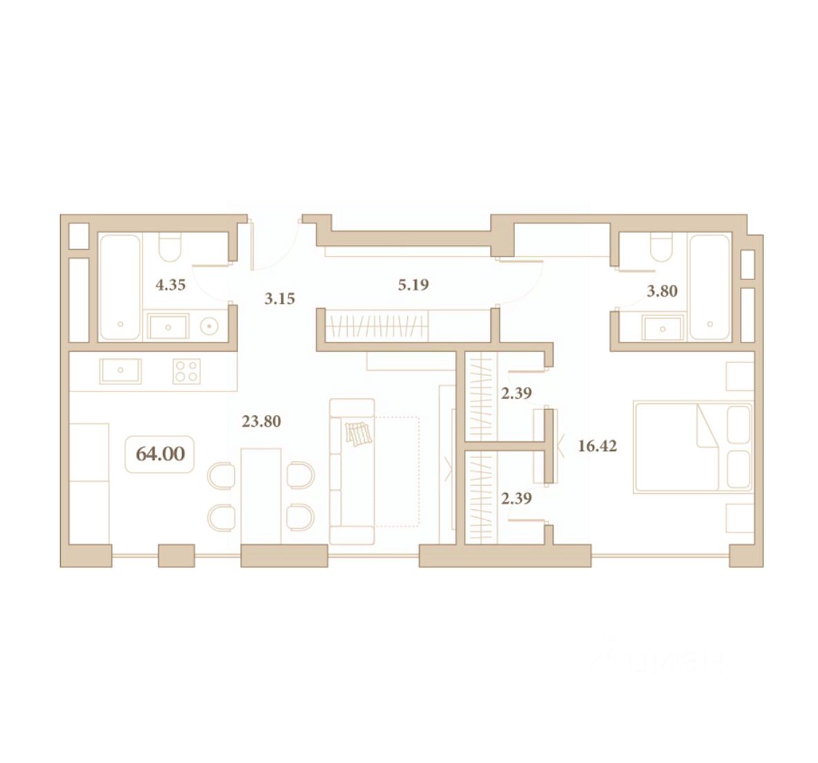Общая площадь64 м²