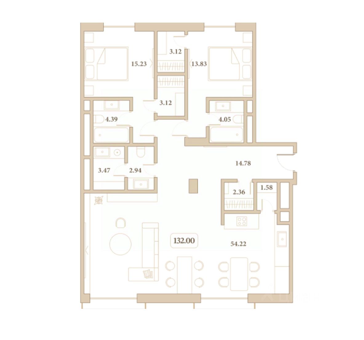 Общая площадь132 м²