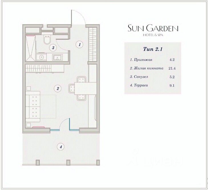 Добро пожаловать в отельный комплекс "Sun Garden" - место, где воплощены все преимущества приморской виллы в сочетании с полным спектром услуг. Позвольте себе насладиться идеальным отдыхом в нашем уникальном проекте: Преимущества отеля "Sun Garden": - дизайнерская мебель, рестораны и SPA-центр - здесь каждая деталь продумана для вашего комфорта вплоть до удобных тапочек; - Территория "Sun Garden" - это 5 ГА уютного, эргономичного и вдохновляющего пространство, где вы можете наслаждаться каждым моментом. - Фитнес-зал, SPA-центр, кристально чистые бассейны, летние бары, детские клубы - здесь есть все для вашего отдыха и развлечений. - Современный SPA-комплекс с широким спектром релаксационных процедур и заботливыми специалистами для вашего удовольствия. - Идеальное сочетание спорта и отдыха: фитнес-зал с кардио и силовыми тренажерами, а также детский клуб рядом для вашего удобства. - Два бассейна по 50 м под открытым небом, где каждый найдет что-то по душе: от детской зоны с аттракциями до бассейна для активного плавания. - Детский клуб с мастер-классами, развлекательными мероприятиями и заботливыми инструкторами - вашим детям будет интересно и увлекательно. "Sun Garden" - это место, где каждый может найти что-то для себя. Наслаждайтесь роскошным отдыхом, вдохновляющей атмосферой и высоким уровнем сервиса. Проведите незабываемое время в нашем отеле и позвольте себе расслабиться и насладиться каждым моментом вашего пребывания. Звоните прямо сейчас и записывайтесь на просмотр!