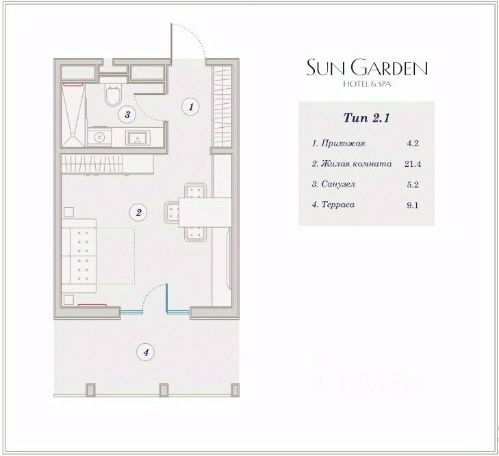 Добро пожаловать в отельный комплекс "Sun Garden" - место, где воплощены все преимущества приморской виллы в сочетании с полным спектром услуг. Позвольте себе насладиться идеальным отдыхом в нашем уникальном проекте: Преимущества отеля "Sun Garden": - дизайнерская мебель, рестораны и SPA-центр - здесь каждая деталь продумана для вашего комфорта вплоть до удобных тапочек; - Территория "Sun Garden" - это 5 ГА уютного, эргономичного и вдохновляющего пространство, где вы можете наслаждаться каждым моментом. - Фитнес-зал, SPA-центр, кристально чистые бассейны, летние бары, детские клубы - здесь есть все для вашего отдыха и развлечений. - Современный SPA-комплекс с широким спектром релаксационных процедур и заботливыми специалистами для вашего удовольствия. - Идеальное сочетание спорта и отдыха: фитнес-зал с кардио и силовыми тренажерами, а также детский клуб рядом для вашего удобства. - Два бассейна по 50 м под открытым небом, где каждый найдет что-то по душе: от детской зоны с аттракциями до бассейна для активного плавания. - Детский клуб с мастер-классами, развлекательными мероприятиями и заботливыми инструкторами - вашим детям будет интересно и увлекательно. "Sun Garden" - это место, где каждый может найти что-то для себя. Наслаждайтесь роскошным отдыхом, вдохновляющей атмосферой и высоким уровнем сервиса. Проведите незабываемое время в нашем отеле и позвольте себе расслабиться и насладиться каждым моментом вашего пребывания. Звоните прямо сейчас и записывайтесь на просмотр!