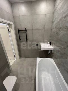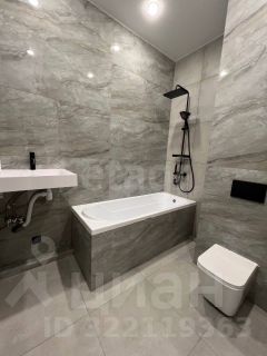 Санузел полностью укомплектован полноценной ванной с тропическим душем. Установлена инсталляция. Большой полотенцесушитель