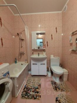На кухне остается кухонный гарнитур с техникой. Совмещенный санузел под кафель.