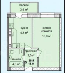 1-К. КВАРТИРА 38,9 КВ.М, 3/5