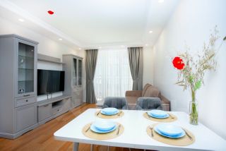 Дом, в котором находятся апартаменты, в отличном состоянии. Для вашего удобства предусмотрены пассажирский лифт и пандус. Придомовая территория ухожена, а рядом расположены магазины, ресторанчики, кофейни и шикарная прогулочная набережная с красивыми видами.