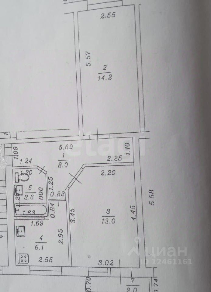 Квартира расположена на пятом втором этаже пятиэтажного дома, техэтаж есть. Из окна открывается вид во двор. В доме все коммуникации центральные.