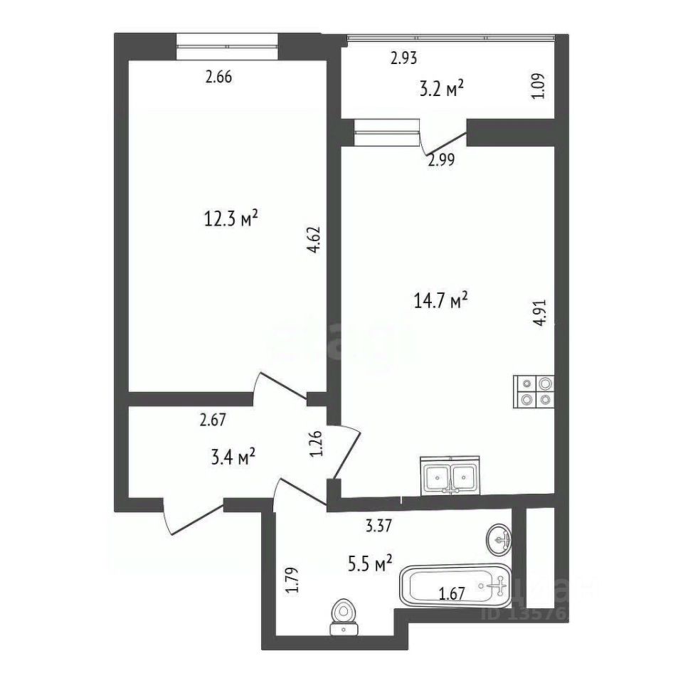 14,7 м²