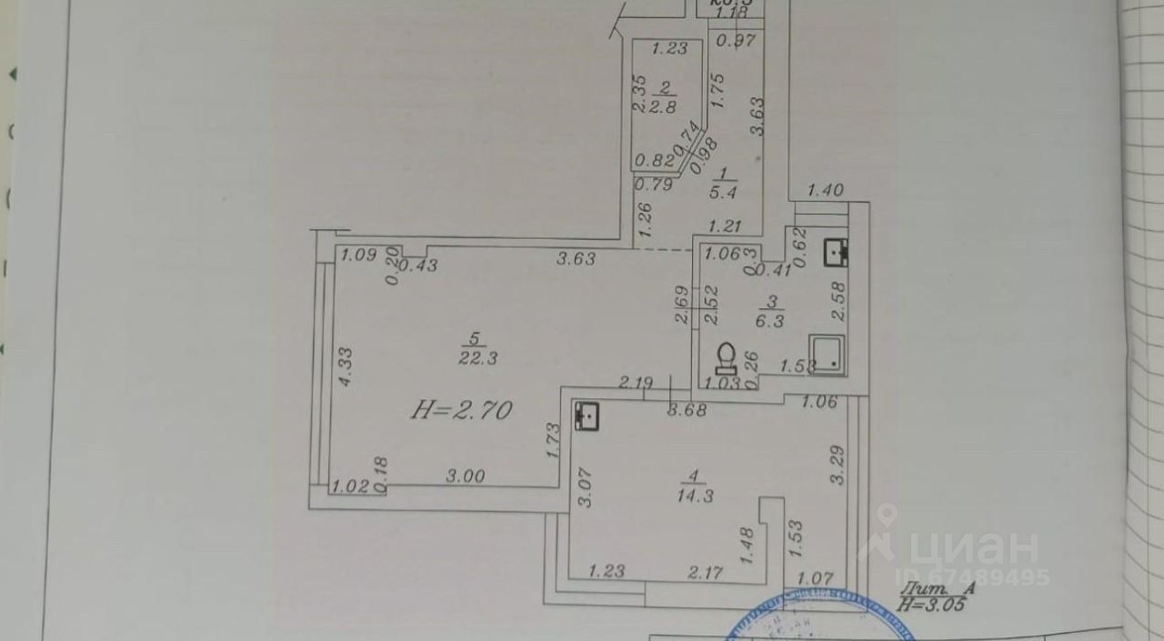 Общая площадь квартиры 52 м2