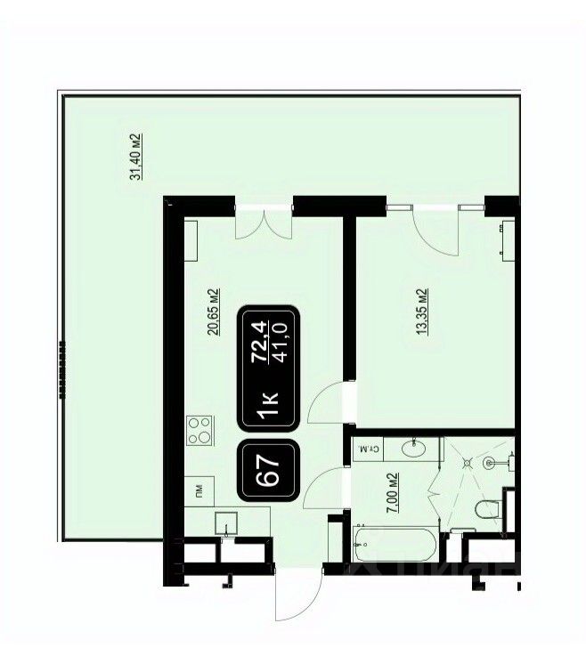 Общая площадь72,4 м²