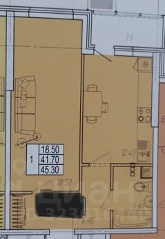 - Общая площадь 45,3 кв.м. (в том числе балкон 3,6 кв.м.).