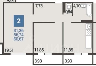 - Общая площадь квартиры 56,8 кв.м.(без учёта лоджий)