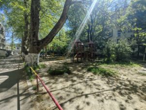 Во дворе есть небольшая детская площадка.