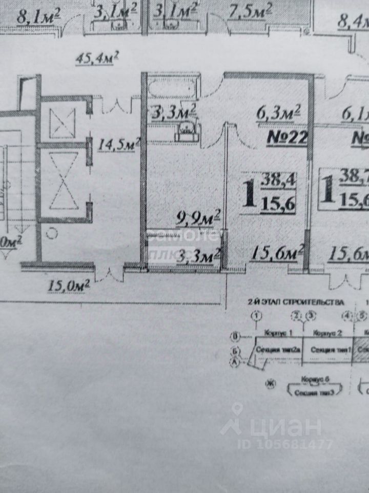 15,6 м²