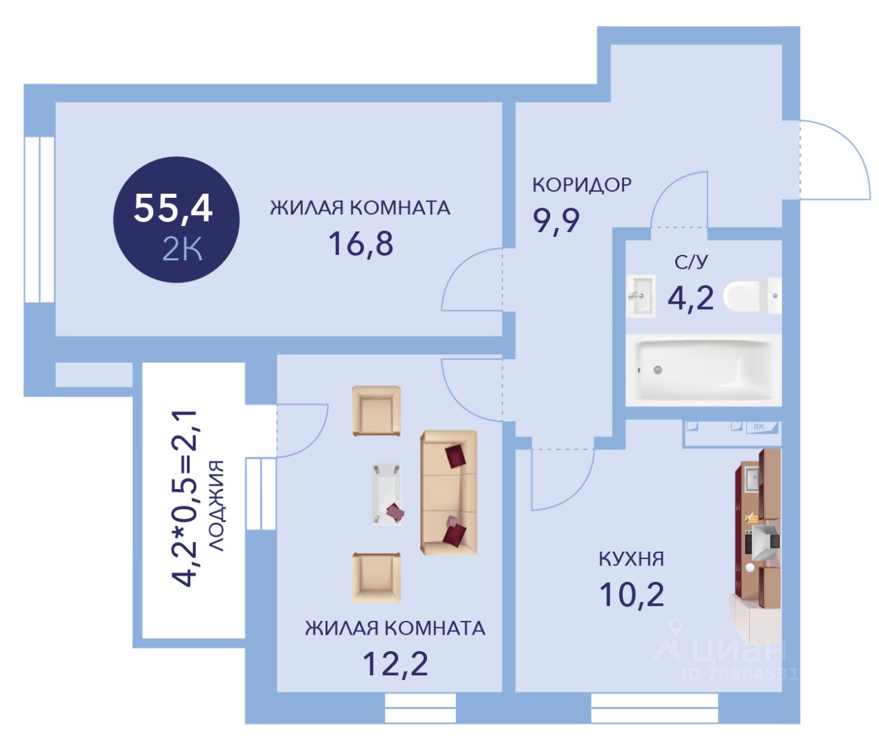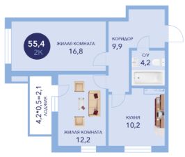 Общая площадь55,4 м²