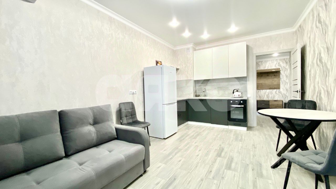 Общая площадь составляет 45 квадратных метров, включая большую жилую комнату, функциональную кухню, санузел и вместительную прихожую;
