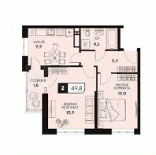 Тип: 2комнатная квартира.