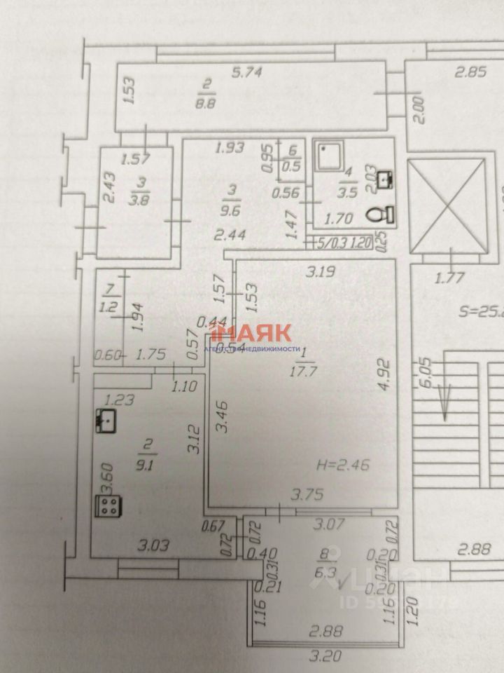 Арт. 124774538 Предлагается к продаже квартира общей площадью 46,2 квадратных метра, расположенная на 8 этаже девятиэтажного дома.